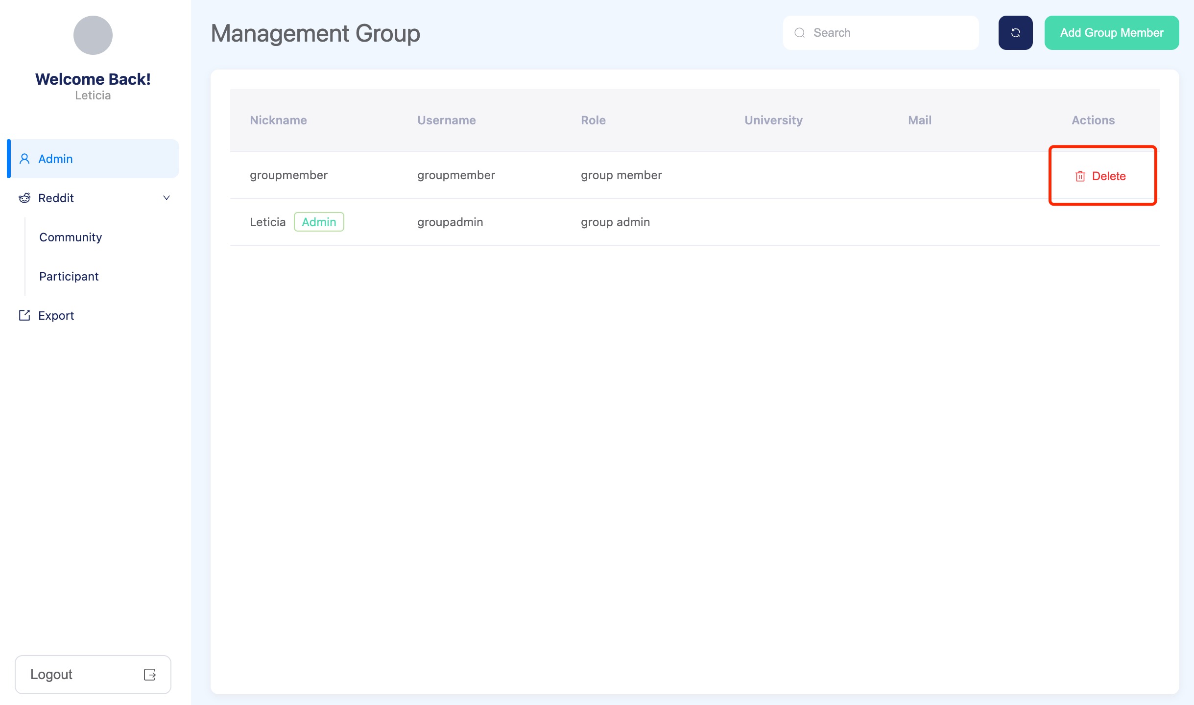 Admin group is a group which contains all the admin users, the group has the priviledge to create/update/delete the reddit-like platforms.