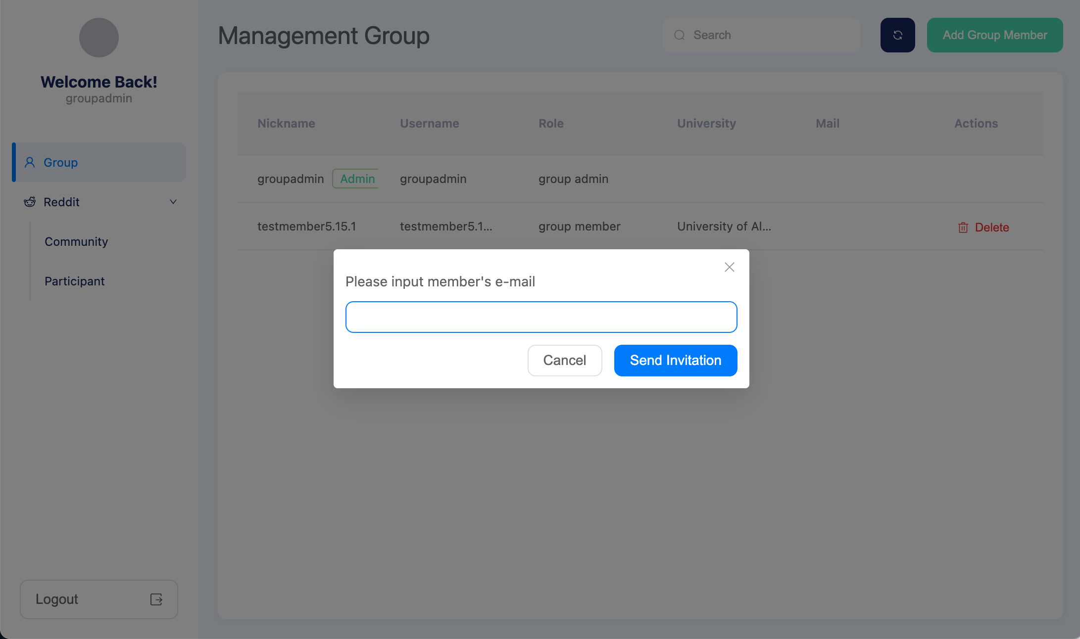 Super admin of platform init a management group with sending an invitation mail to group admin.